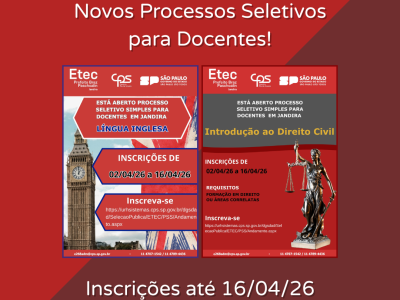 Esse mês, estamos abrindo dois novos processos seletivos para docentes! Temos opções para aqueles que desejam lecionar no Ensino Médio Técnico, ou nos Cursos Técnicos Modulares: Está aberto um processo para o componente de Língua […]