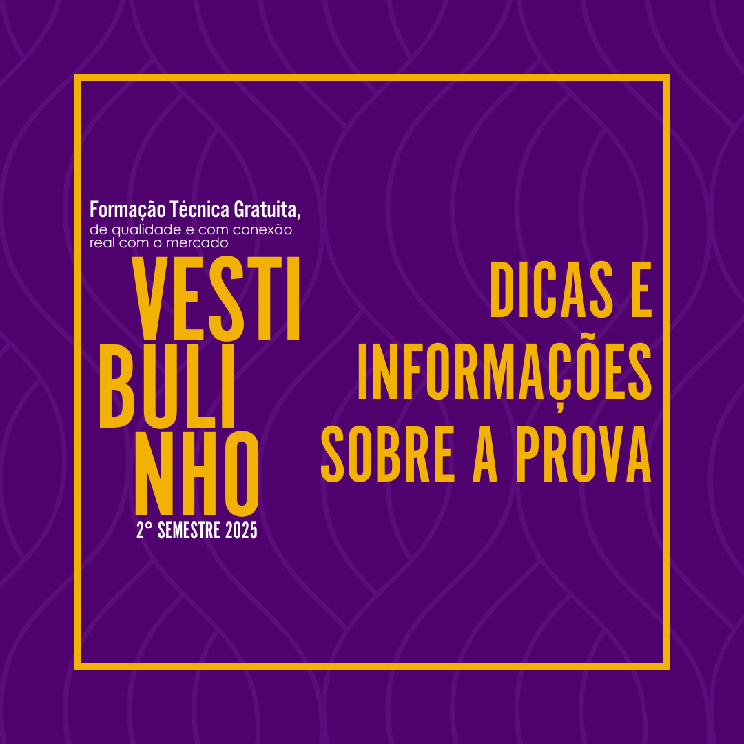 A prova será realizada no dia 06/07, às 13h30, no local de prova indicado no site www.vestibulinho.etec.sp.gov.br. A entrada na escola será permitida a partir das 12h30, com os portões fechando às 13h30.